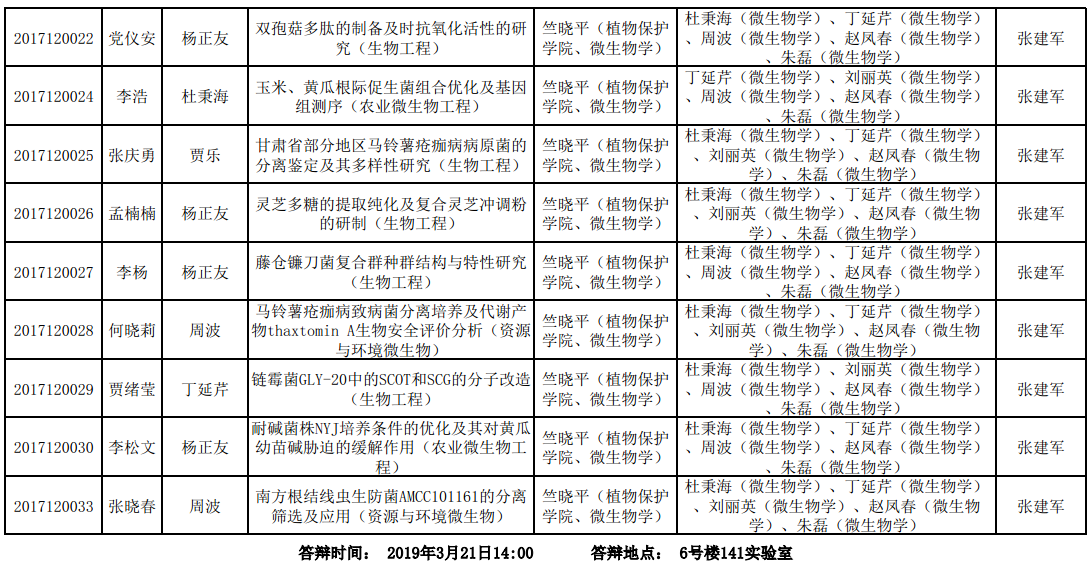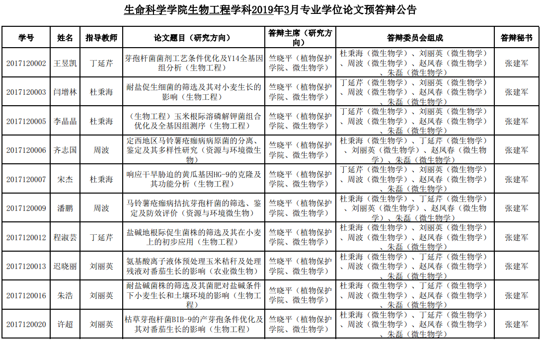 生命科学学院生物工程学科2019年3月专业学位论文预答辩公告2