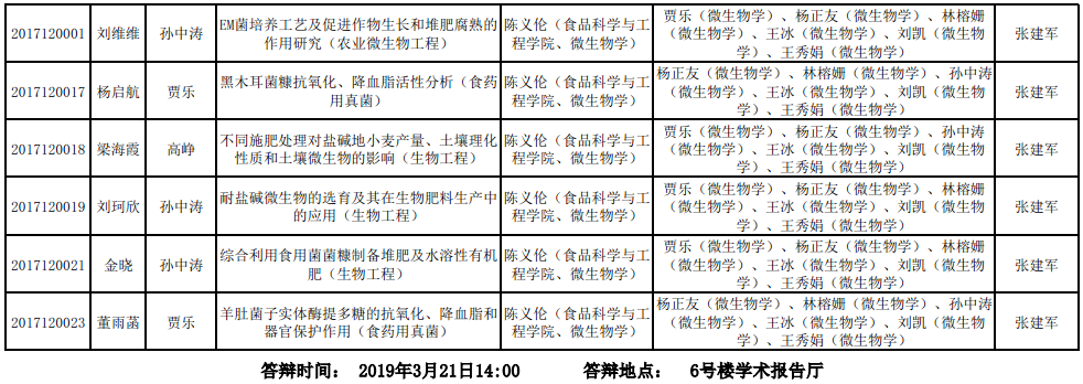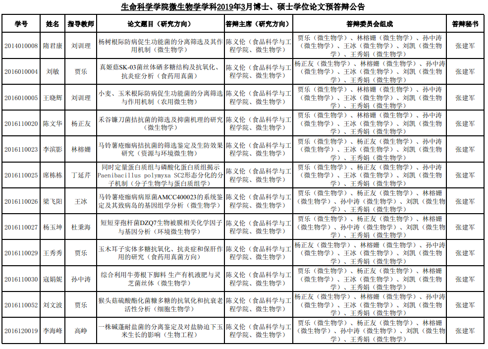生命科学学院微生物学学科2019年3月博士、硕士学位论文预答辩公告