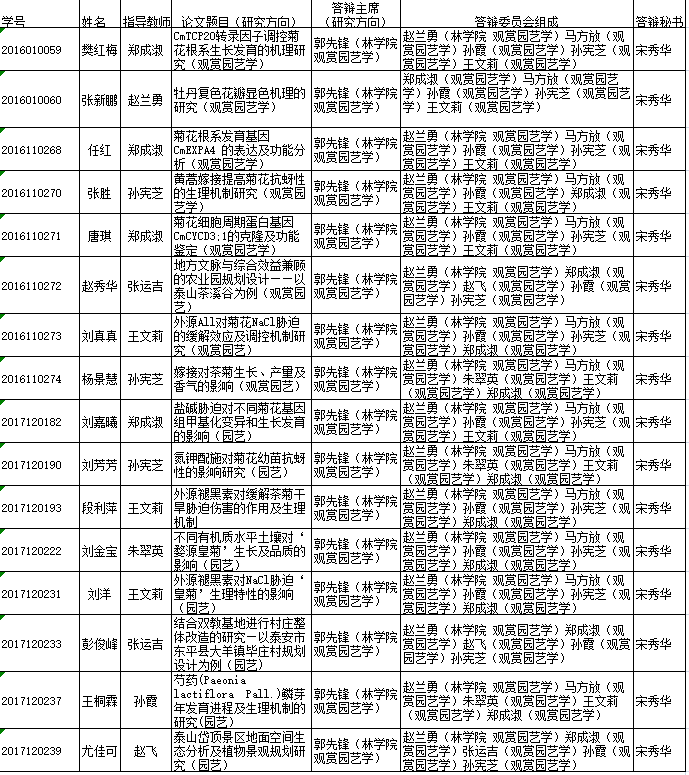 园艺 学院 观赏园艺学科 2019 年 3 月 博士、硕士学位论文预答辩公告